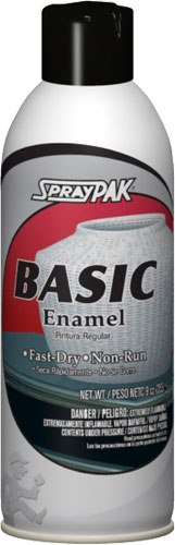SprayPAK® Basic Enamel Paint is a basic enamel for the value-conscious consumer. For interior and exterior use. Dries quickly. Retards rust.