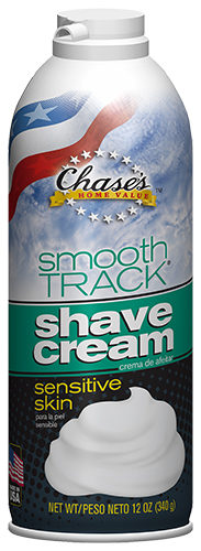 Chase’s Home Value™ Smooth Track® sensitive-skin shave cream formula provides a comfortable, close shave. Soothing lubricants guard against cuts, nicks, and irritation. Thick foam cushions skin leaving it smooth and comfortable. Spicy floral fragrance.
